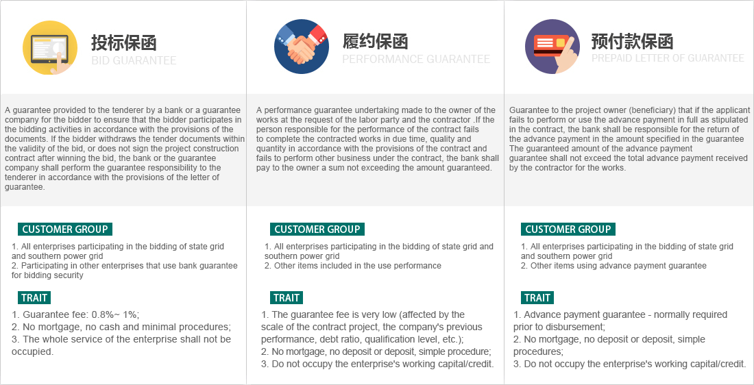 On behalf of the acceptance of tender guarantee, performance guarantee and advance payment guarantee three kinds of guarantee services