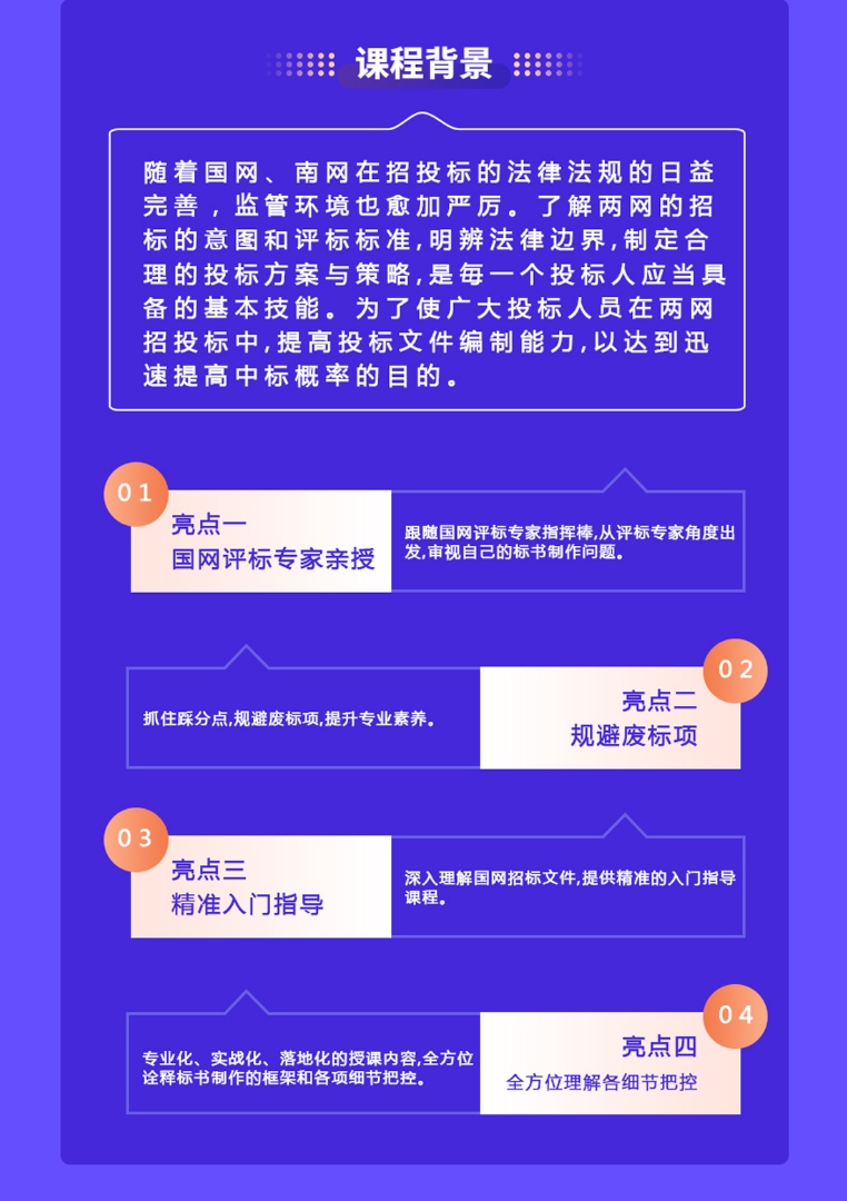 通过“直播+录播”的结合,让学员们能更好的掌握招投标知识,为企业开展招投标工作奠定基础,全面提升企业的竞争力!
